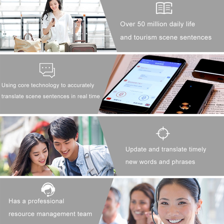 3. Dual mic adapterization and denoising, quick reaction accurate recognition and real time translate.