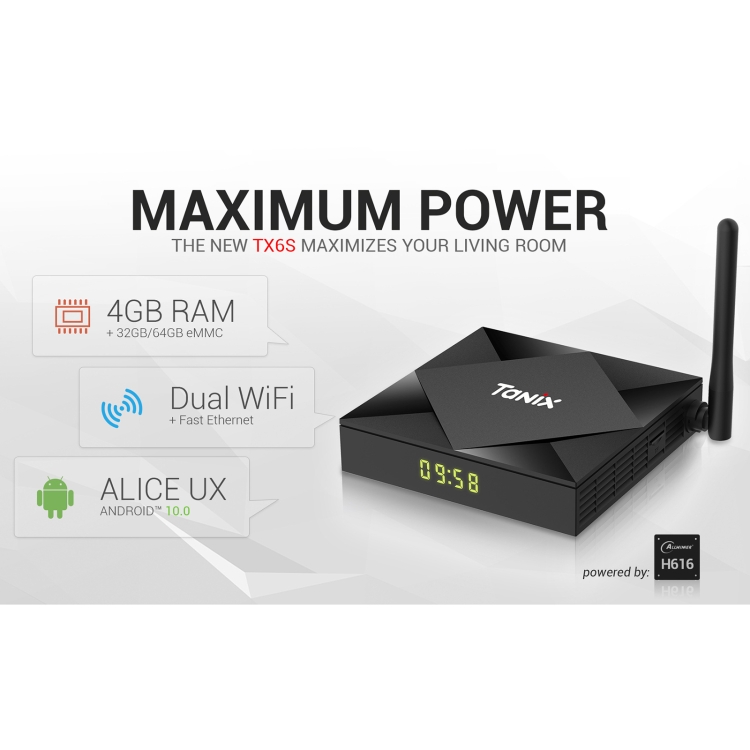 TANIX TX6s 4K Smart TV BOX Android 10 Media Player with Remote Control, Quad Core Allwinner H616, without Bluetooth Function, RAM: 2GB, ROM: 8GB, 2.4GHz WiFi, US Plug