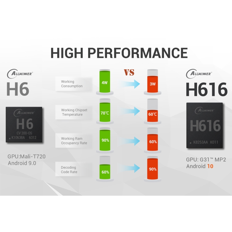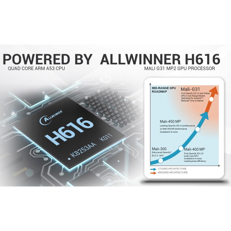 1. CPU: Allwinner H616 64bit, Quad-core Cortex A53