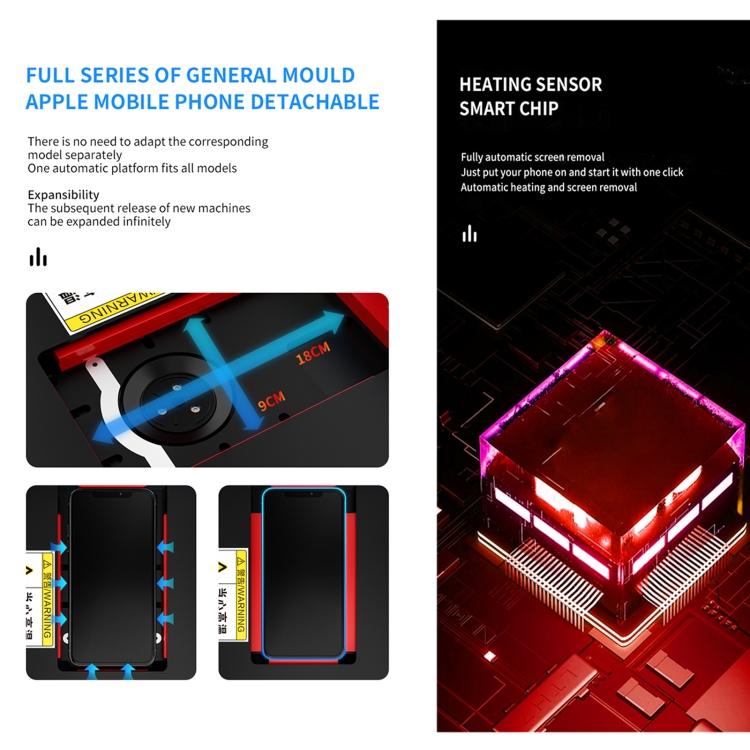 1. Fully automatic screen removal,just put your phone on and start it with one-key, automatic heating and screen removal.
