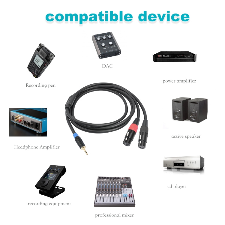 5. Product purpose: Used to connect devices equipped with dual XLR line stereo output to audio input devices equipped with 3.5mm (1/8 inch) micro stereo. For example, connect the XLR output of an audio player to an active speaker with a 3.5mm input, and connect the audio output of the mixing console to a small power amplifier with a 3.5mm interface input.