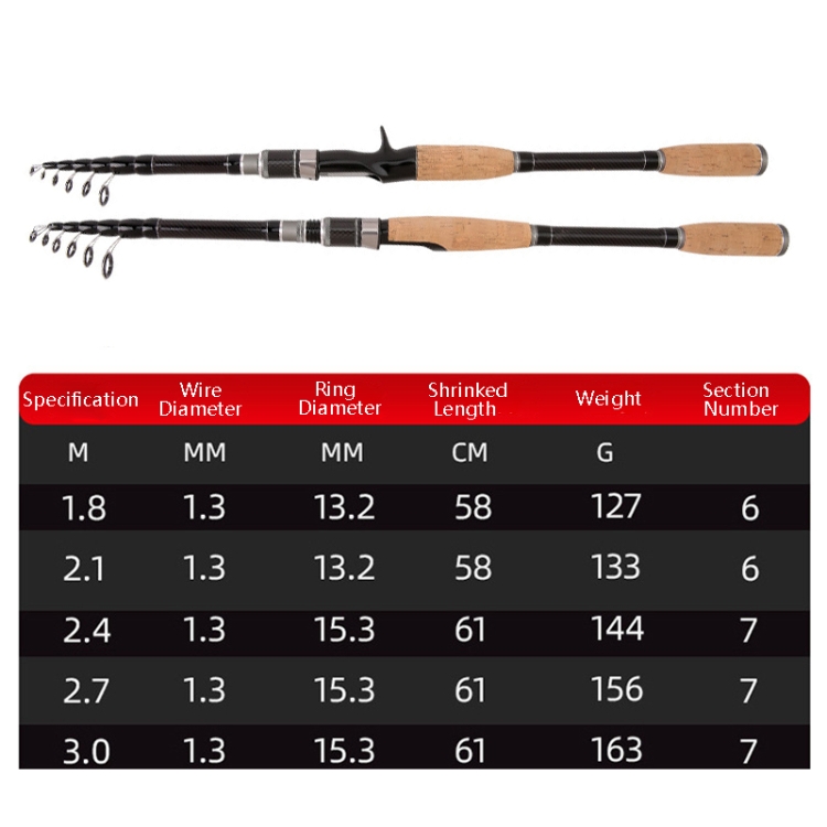 5. Weight: about 127g for 1.8m, about 133g for 2.1m, about 144g for 2.4m, about 156g for 2.7m, about 163g for 3.0m