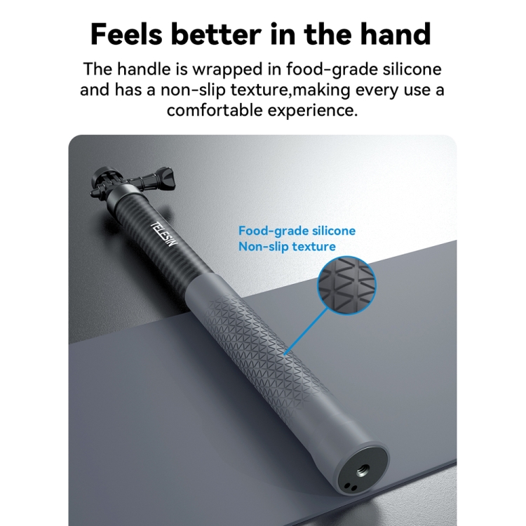 TELESIN 3M Carbon Fiber Selfie Stick Monopod With 1/4 Screw For Action Camera