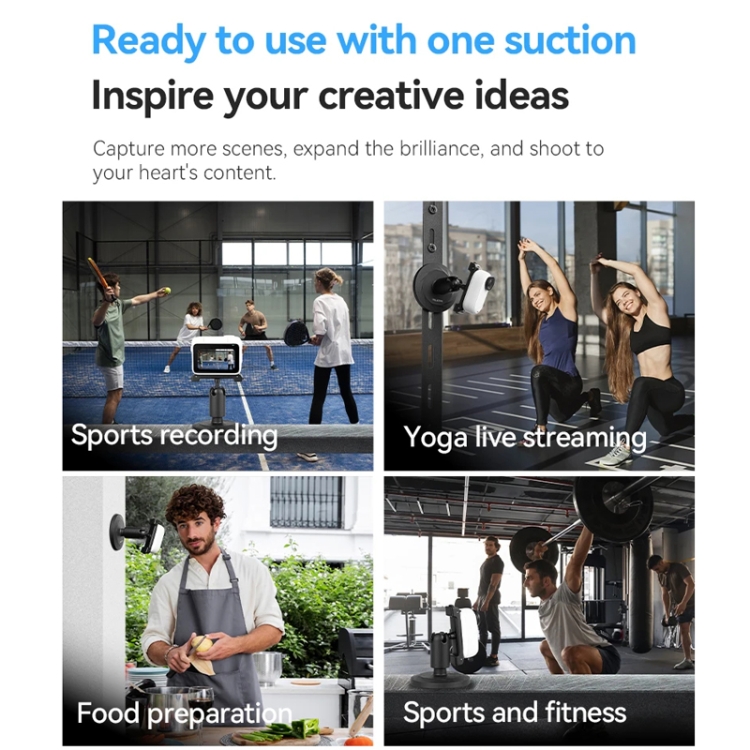 2. Dual possibilities, unlocking more camera positions. The set includes two bases, a magnetic suction cup and a suction cup, which can be used in different scenarios to unlock more new camera positions. (Suction cup base optional)