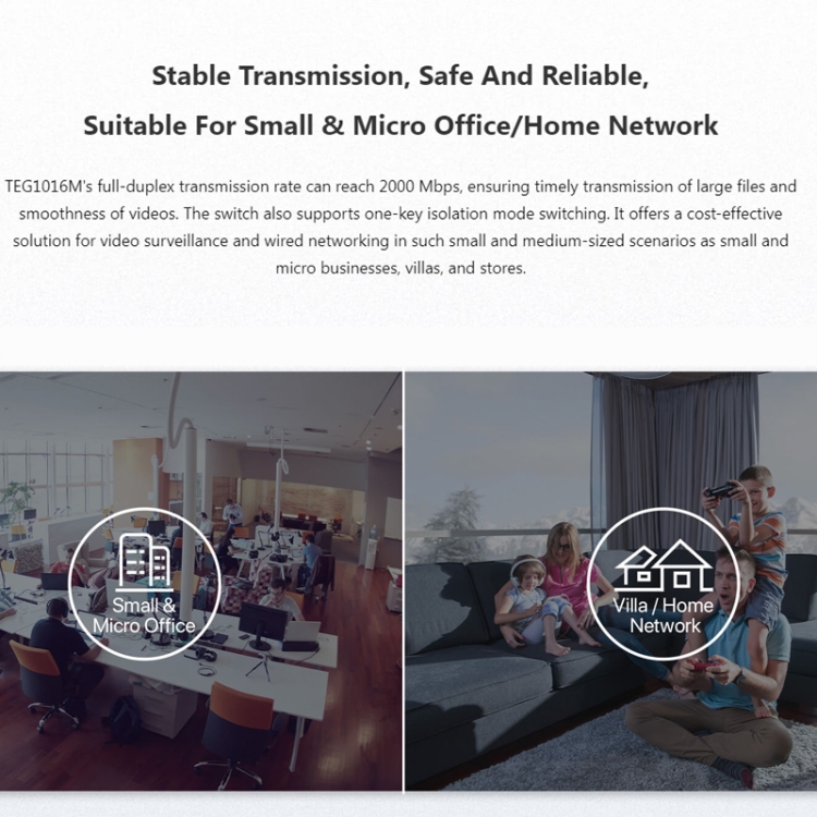 5. Advanced Mode: Supports one-key isolation mode switching. It offers a cost-effective solution for video surveillance and wired networking in such small and medium-sized scenarios as small and micro businesses, villas, and stores