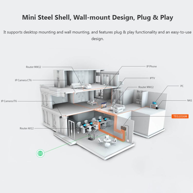 2. Plug and Play: It supports desktop mounting and wall mounting, and features plug & play functionality and an easy-to-use design