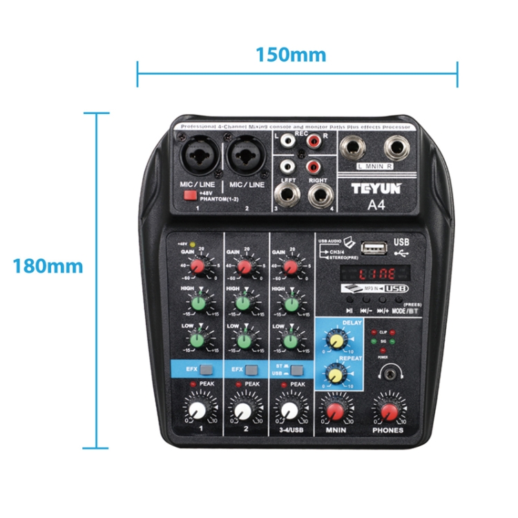 TEYUN A4 4-way Small Microphone Digital Mixer Live Recording Effector