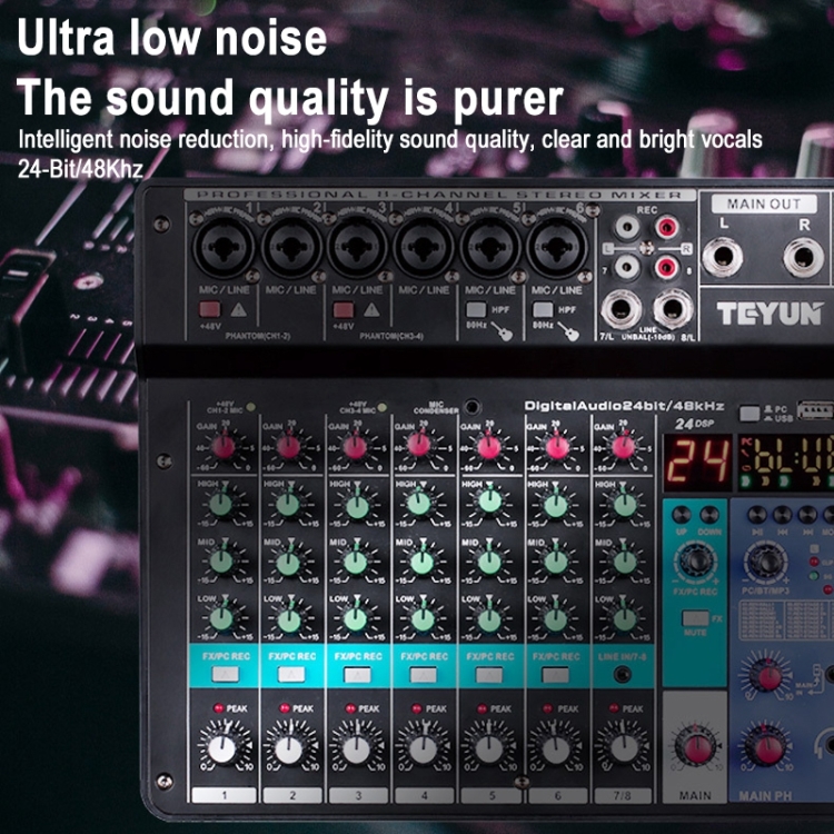 TEYUN NA8 8-channel Small Mixing Console Mobile Phone Sound Card Live Broadcast Computer Recording Console Processor, US Plug