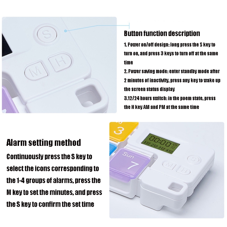 TF-248 7-Cell Smart Timing Reminder Plastic Pill Box Pill Storage Box