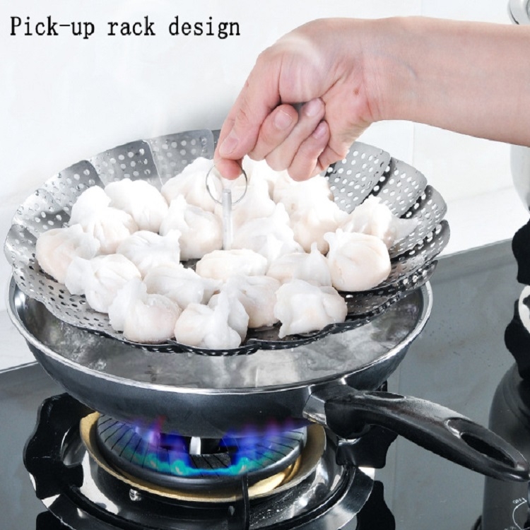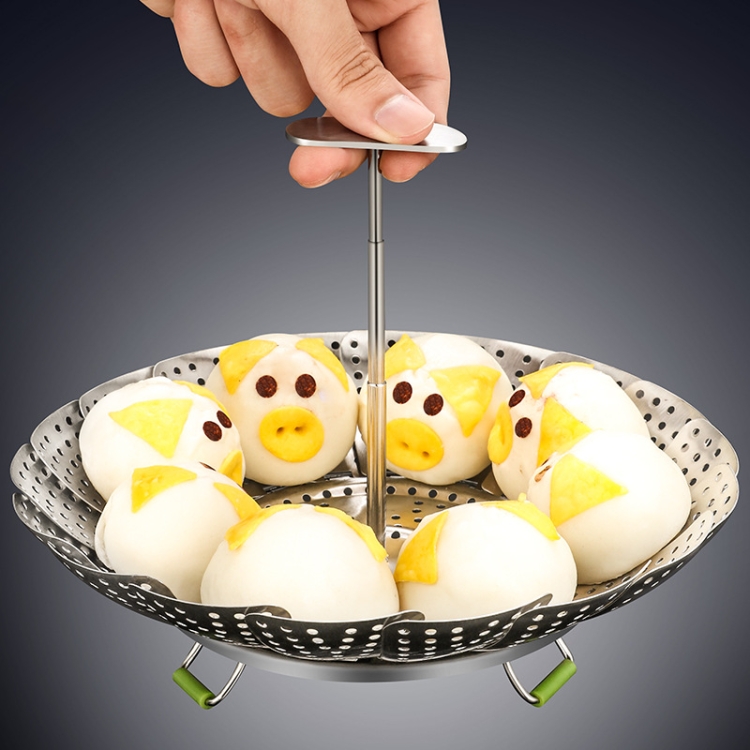 Thickened And Retractable Stainless Steel Round Steamer