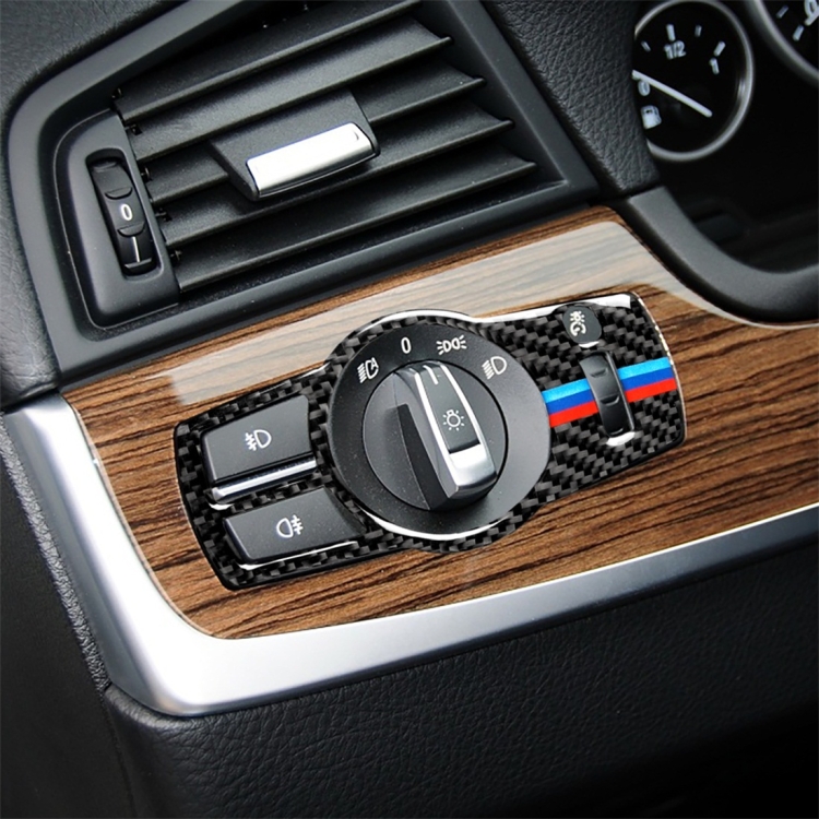 Three Color Carbon Fiber Car Headlight Switch Decorative Sticker for BMW 5 Series F01 / F10 / F07 / F25 / F26, Suitable for Left-hand Driving