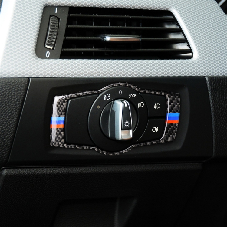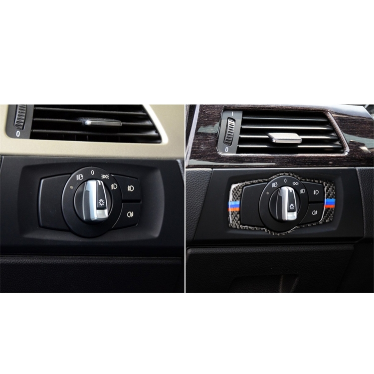 Three Color Carbon Fiber Car Headlight Switch Decorative Sticker for BMW E90 / E92 / E93 2005-2012