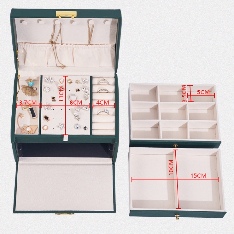 Three-Layer Leather Drawer Type Jewelry Storage Box Earrings Box With Lock