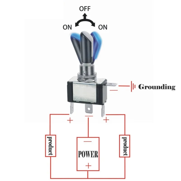 1) Three-pole ON-OFF toggle switch with blue light