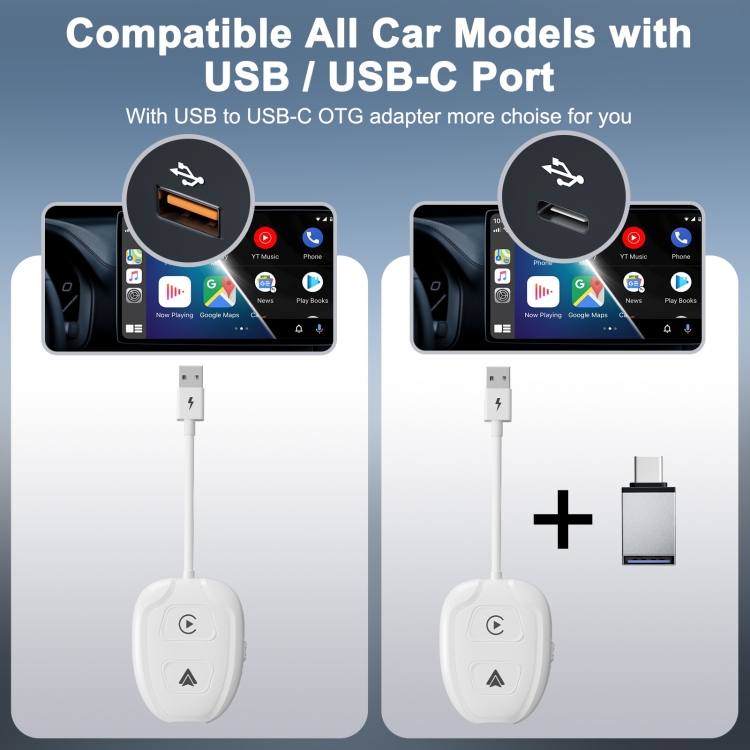 THT-020-9-1 USB + USB-C / Type-C Wired to Wireless Carplay / Android Auto Adapter