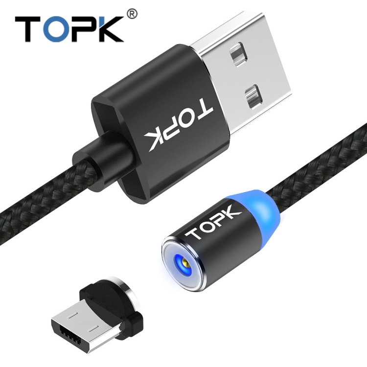 TOPK AM23 1m 2.4A Max USB to Micro USB Nylon Braided Magnetic Charging Cable with LED Indicator