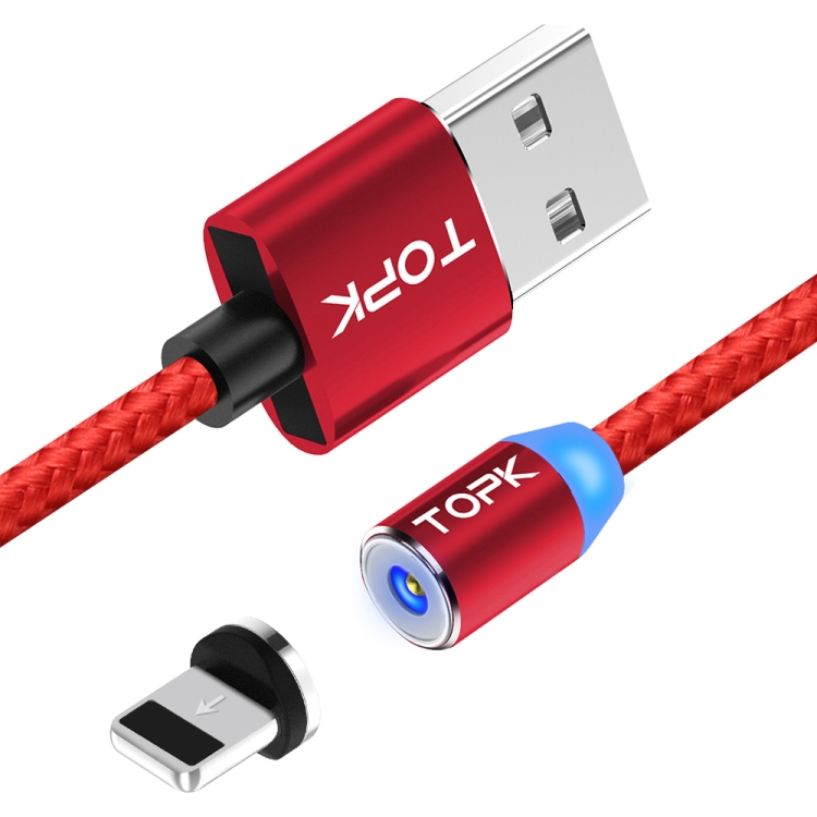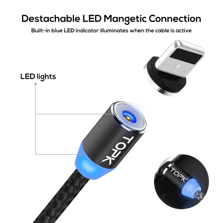 TOPK AM23 2m 2.4A Max USB to 8 Pin Nylon Braided Magnetic Charging Cable with LED Indicator