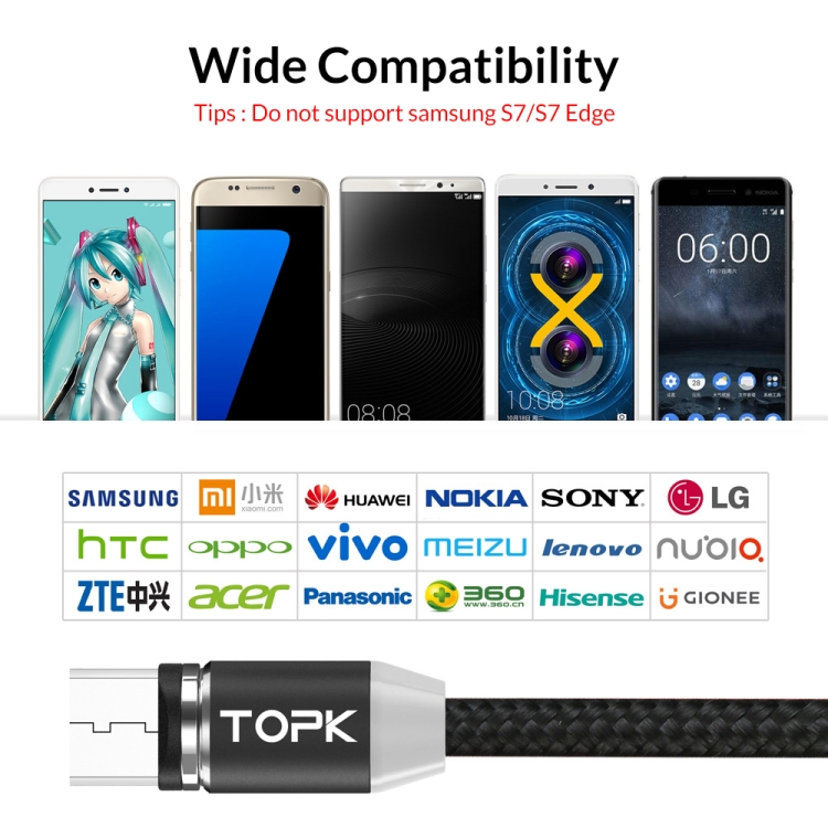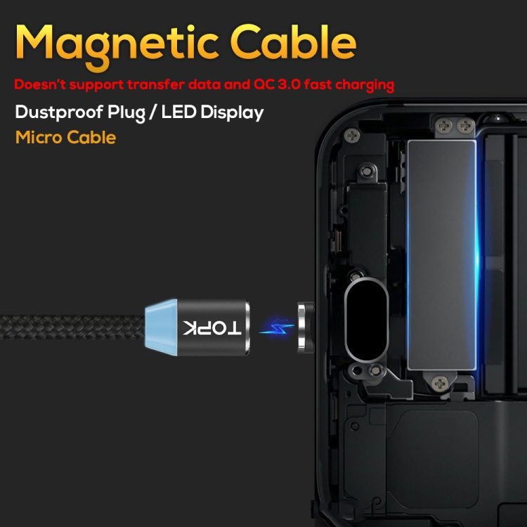 TOPK AM23 2m 2.4A Max USB to Micro USB Nylon Braided Magnetic Charging Cable with LED Indicator