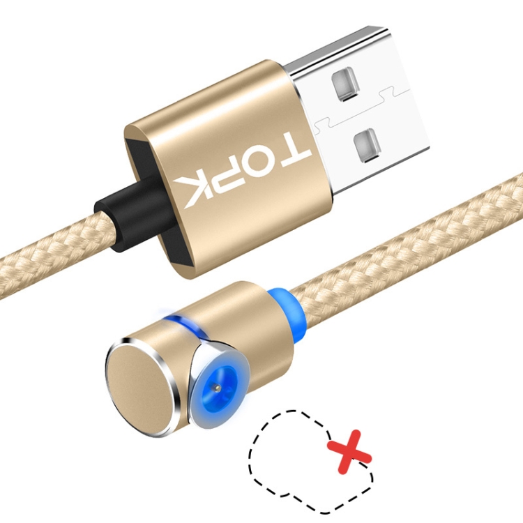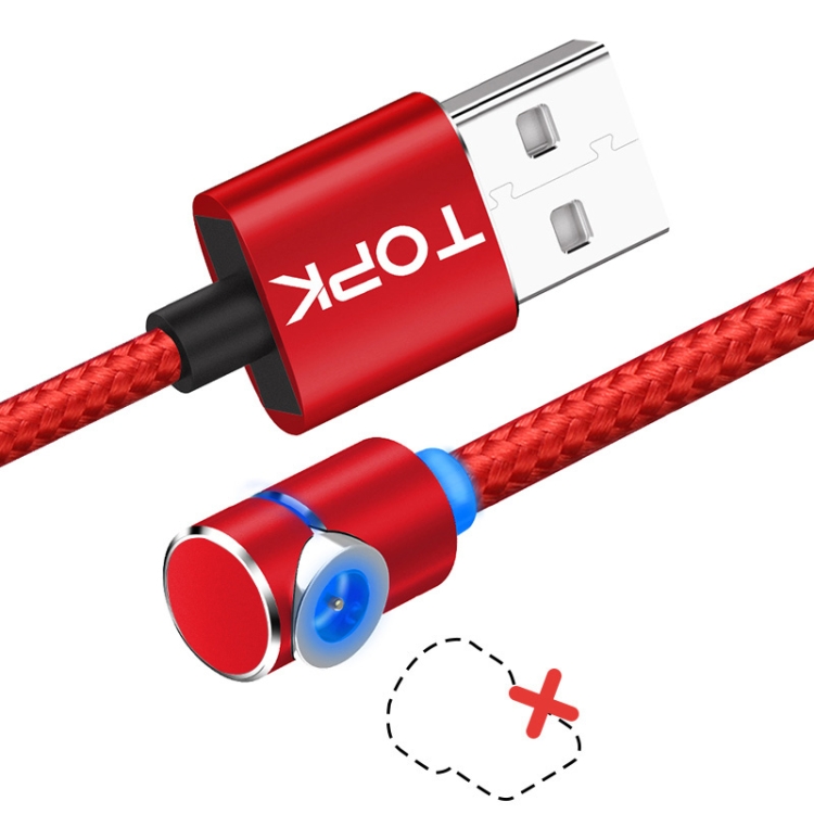 TOPK AM30 1m 2.4A Max USB to 90 Degree Elbow Magnetic Charging Cable with LED Indicator, No Plug