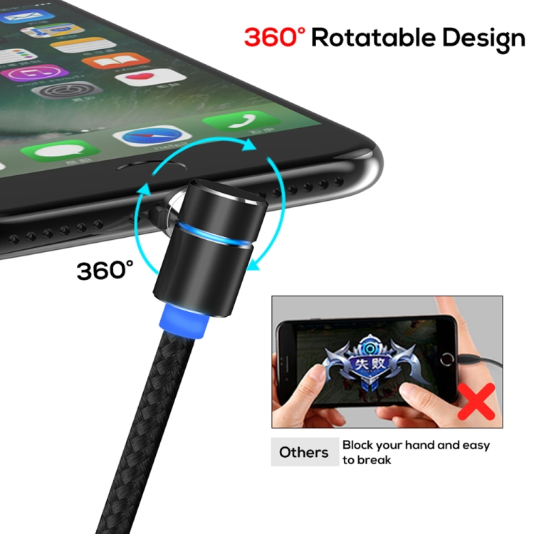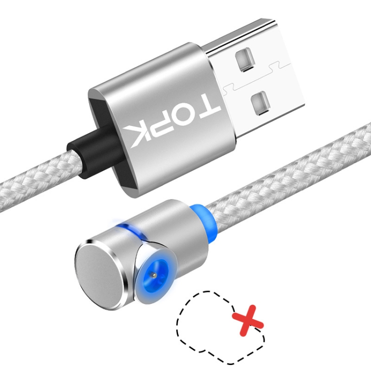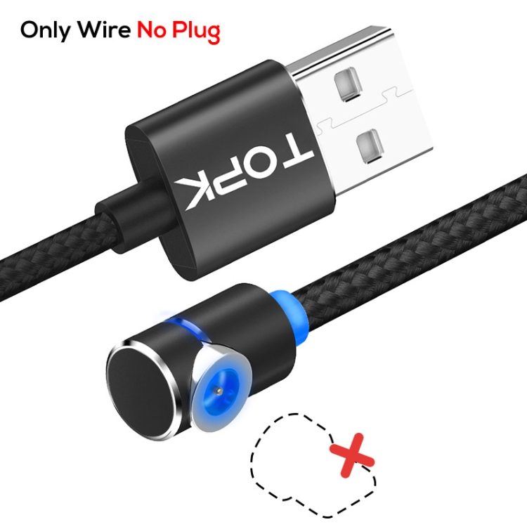 TOPK AM30 2m 2.4A Max USB to 90 Degree Elbow Magnetic Charging Cable with LED Indicator, No Plug