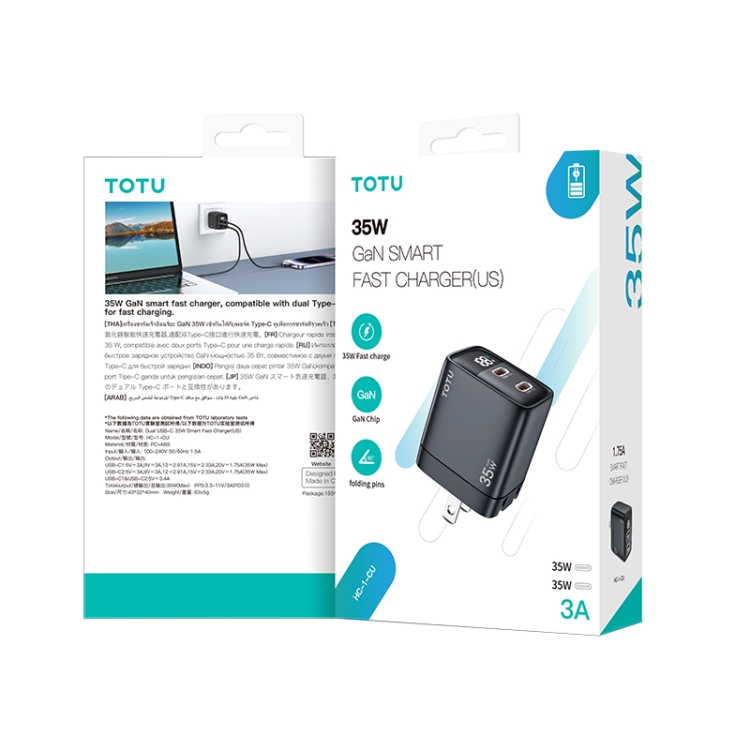 TOTU 35W GaN Dual USB-C/Type-C Smart Digital Display Charger