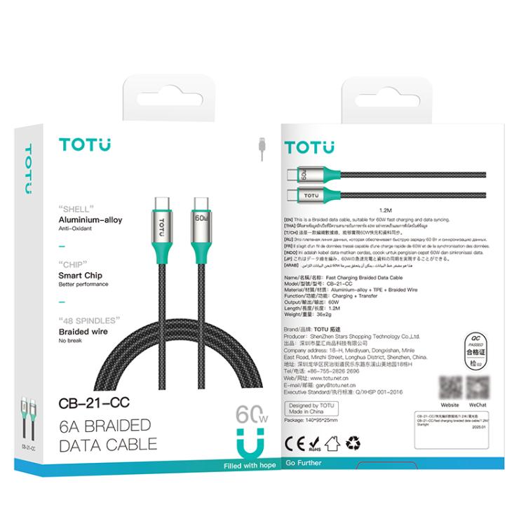 TOTU CB-21-CC 60W USB-C / Type-C to Type-C Aluminum Alloy Braided Data Cable