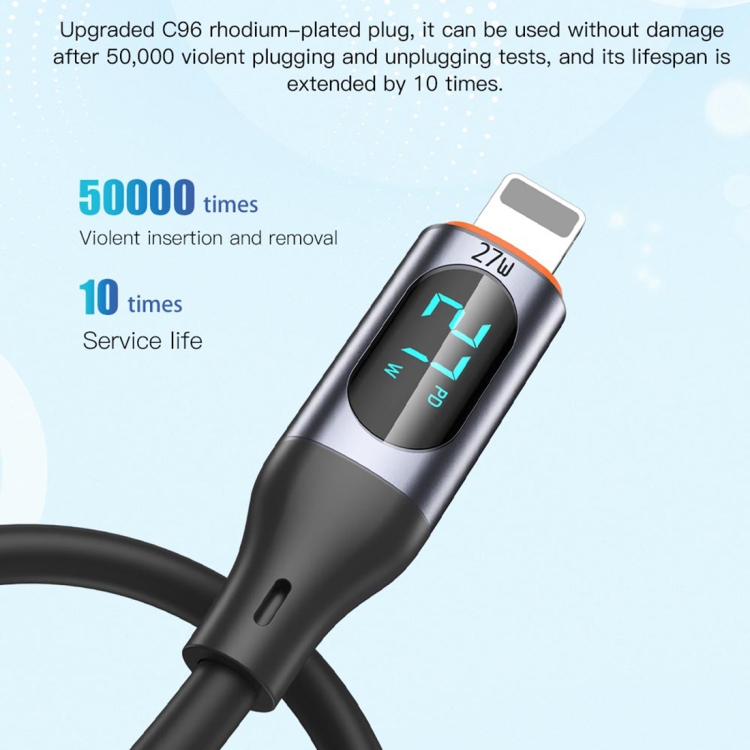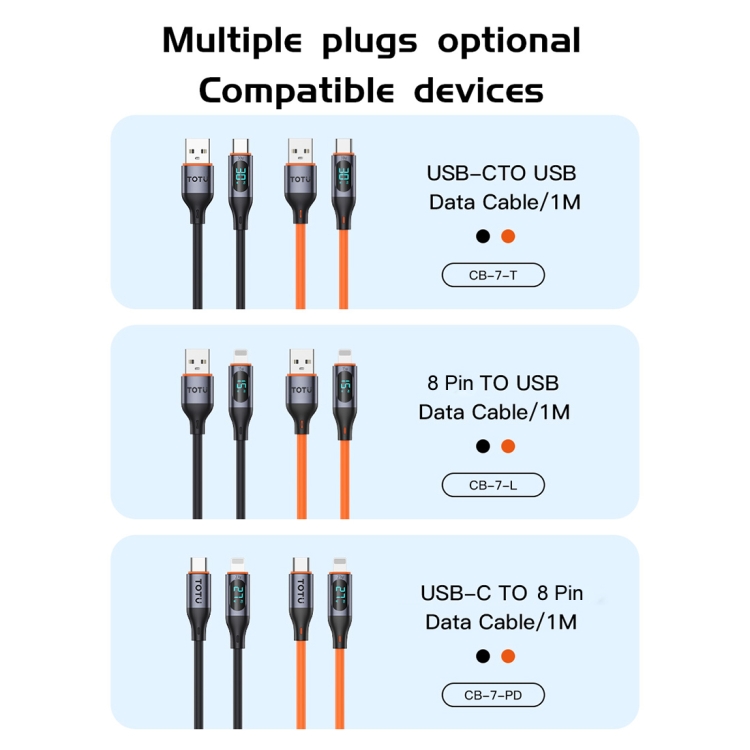 TOTU CB-7-L 15W USB to 8 Pin Digital Display Fast Charging Silicone Cable, Length: 1m