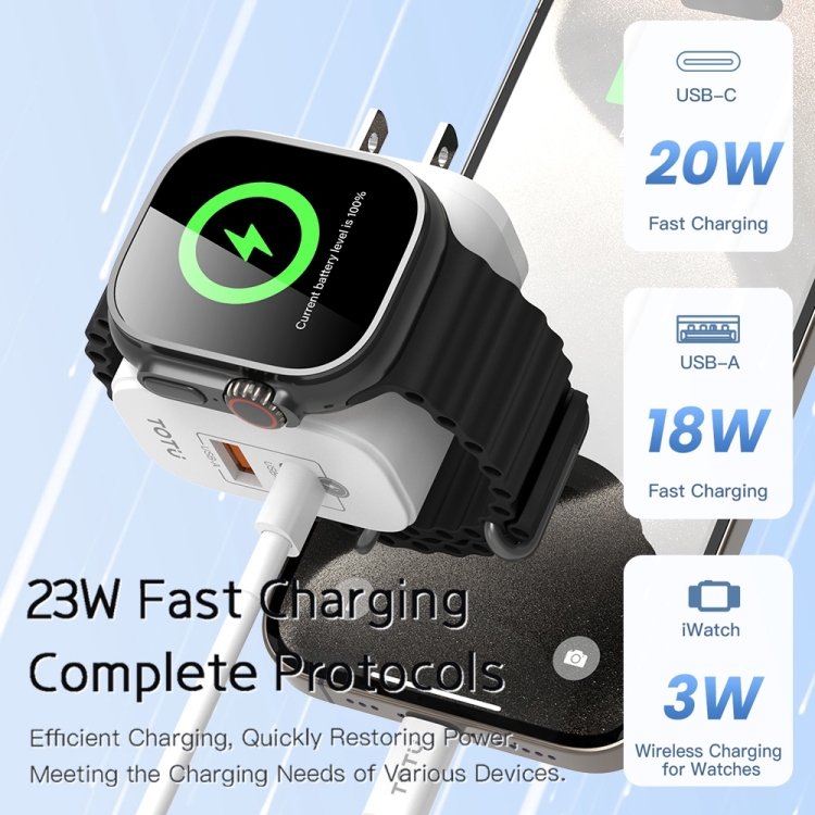 TOTUDESIGN UW128 23W USB-A to Type-C GaN Watch Fast Charging Travel Charger