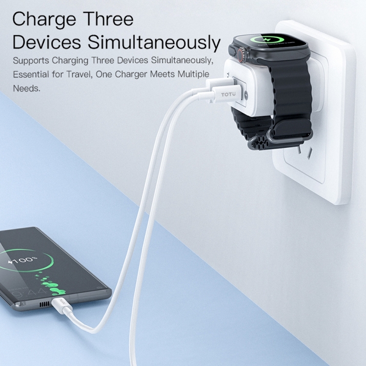 1. 3-in-1 Charger: This charger adapter with USB-C port, a USB-A port & built-in for Apple Watch wireless charger, allowing you to charge 3 devices simultaneously while eliminating confusion when using different chargers & multiple devices