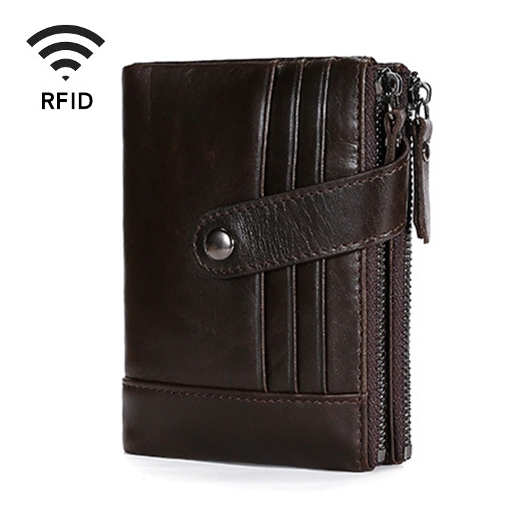 TP-196 Multi-functional Retro Cowhide Leather Multiple Card Slots Dual zipper RFID Wallet