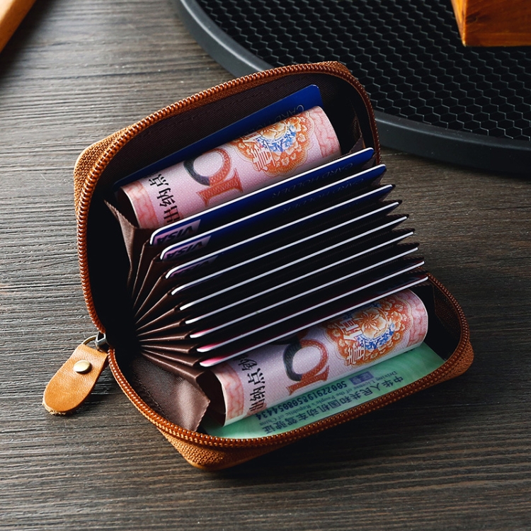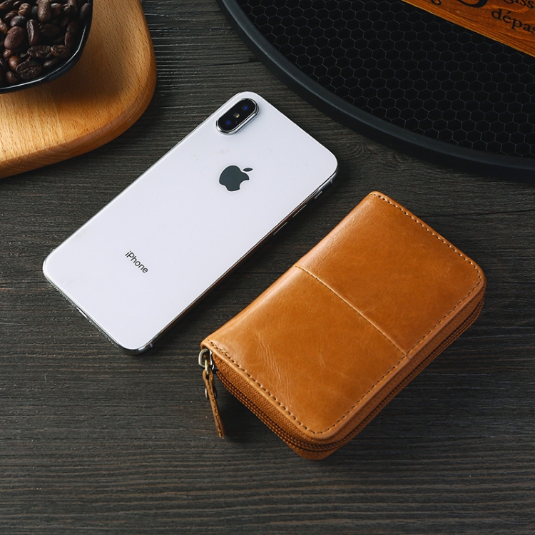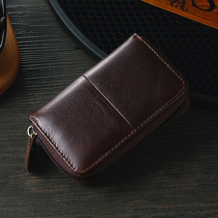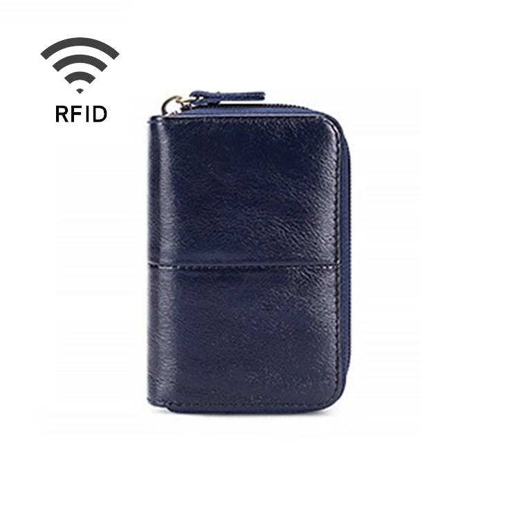 TP-8290 RFID Oil Wax Leather Zipper Change Purse Organ Card Holder