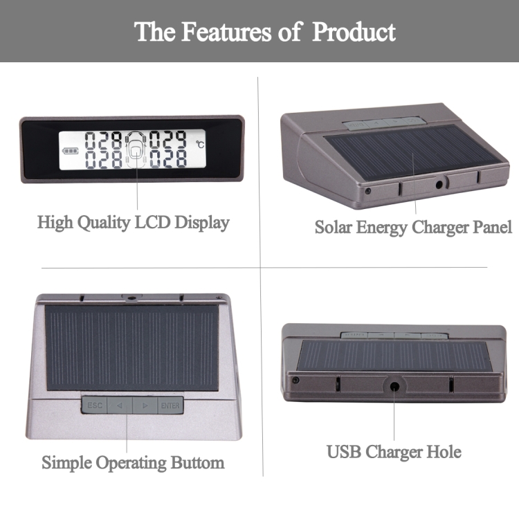 TPMS Car Auto Universal Tire Pressure Temperature Monitoring System USB Solar Power Monitor Wireless LCD Display 4 External Sensor Tire Pressure