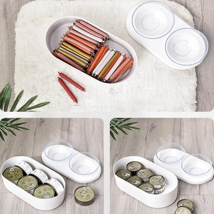 Transparent Pet Bowl Grain Storage Type Neck Protector Oblique Double Bowl