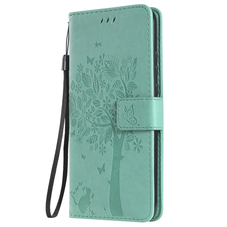 Tree & Cat Pattern Pressed Printing Horizontal Flip PU Leather Case with Holder & Card Slots & Wallet & Lanyard