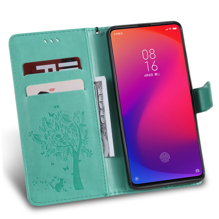 Tree & Cat Pattern Pressed Printing Horizontal Flip PU Leather Case with Holder & Card Slots & Wallet & Lanyard