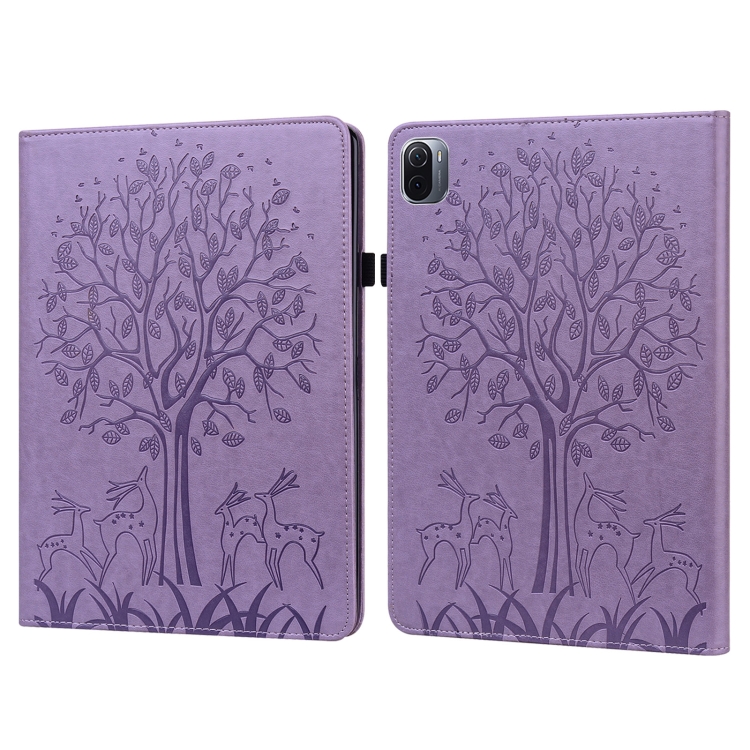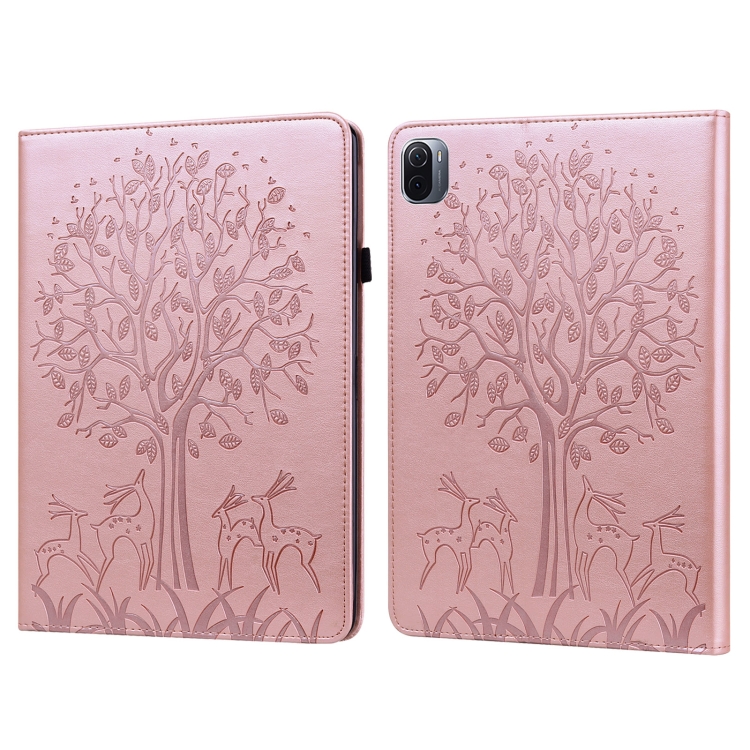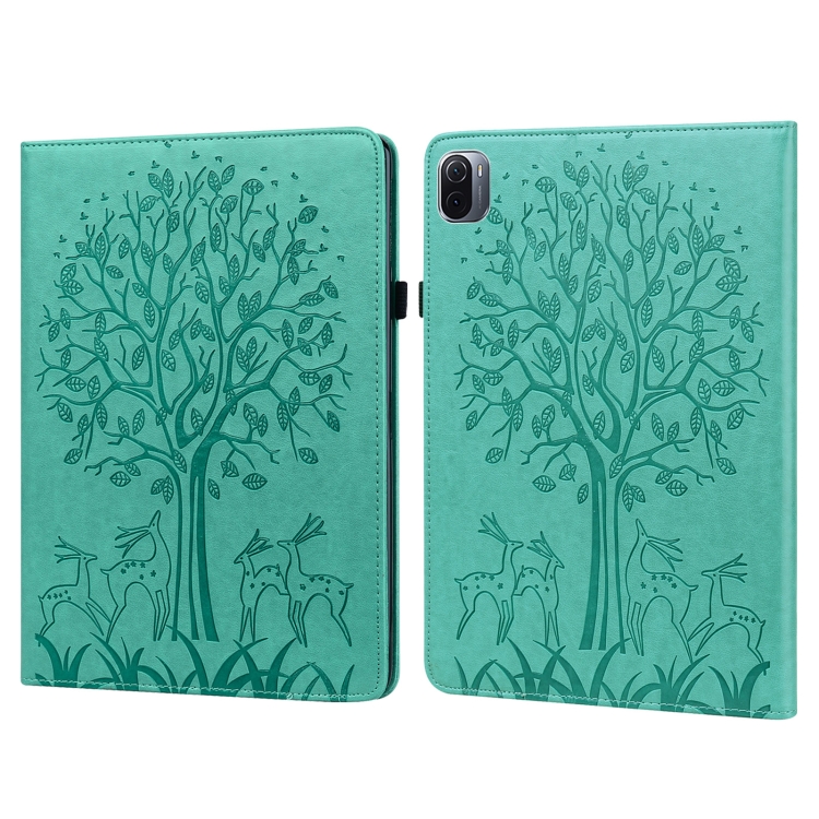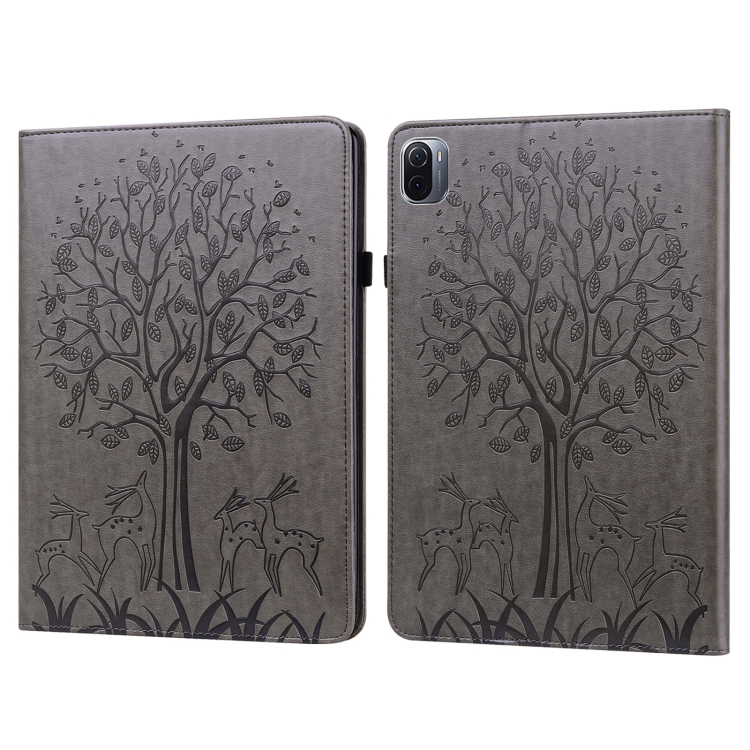 Tree & Deer Pattern Pressed Printing Leather Tablet Case with Sleep / Wake-up