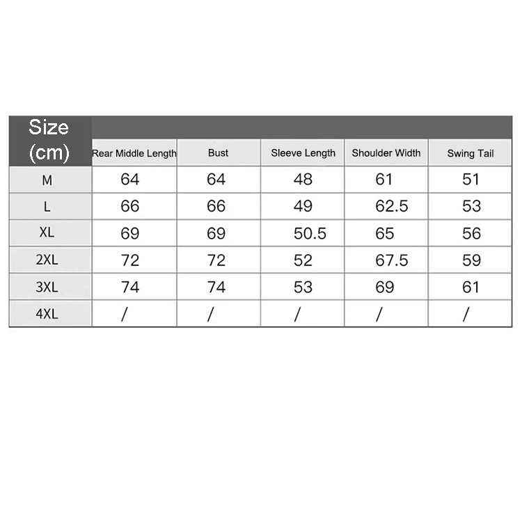 | Size | M, L, XL, XXL, XXXL |