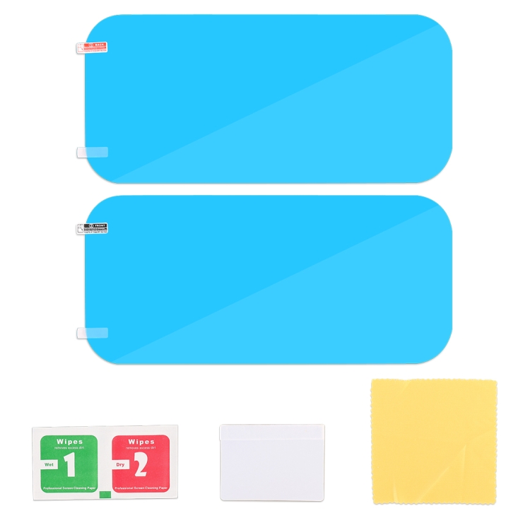 1. PET + Nano coating protective film with high transmittance, Anti-fog, anti-glare, anti-mist, waterproof, rainproof, which effectively protects your driving safety in a rainy or foggy day.