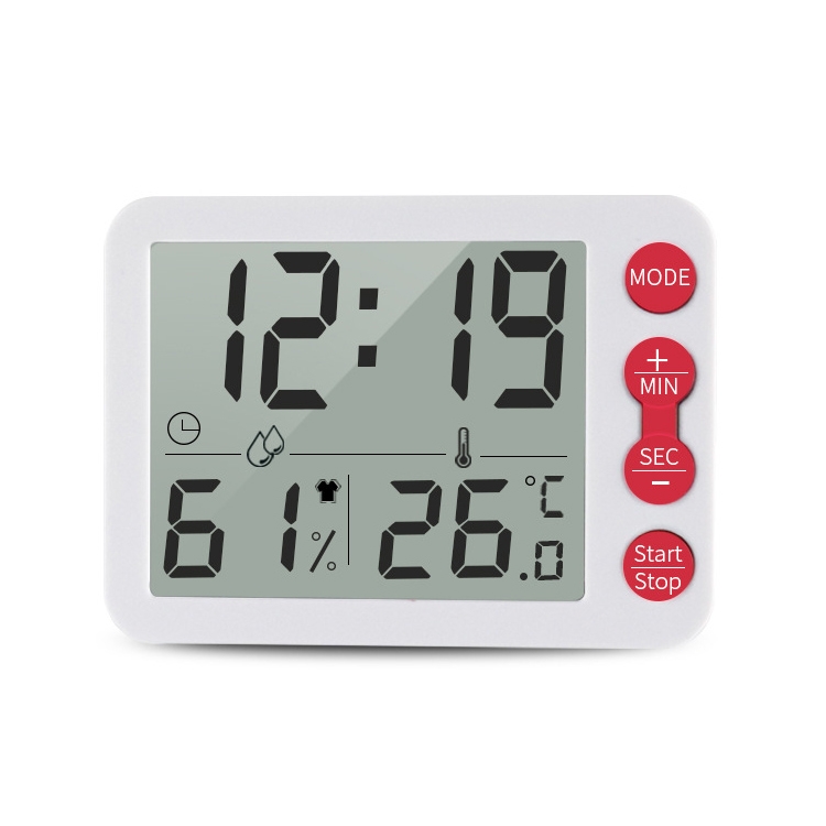 TS-9606-WR Large Screen Alarm Timer Temperature Humidity Meter(White Red)