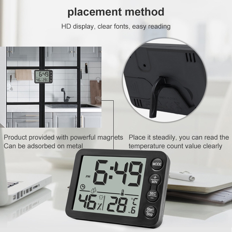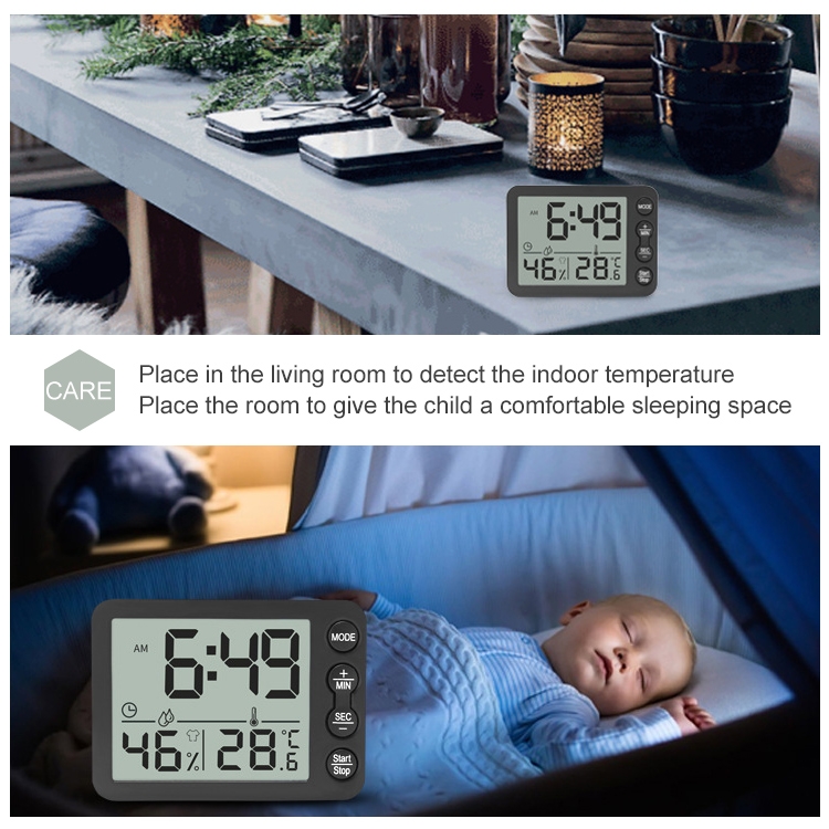 7. Function: 12/24 hours switching, counting up/counting down, humidity detection, comfort level display