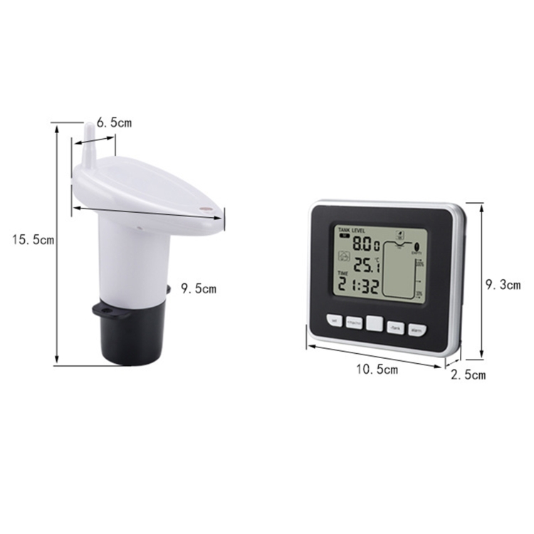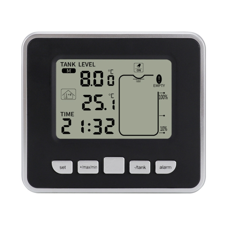 TS-FT002 Multifunctional Ultrasonic Electronic Water Tank Level Gauge With Indoor Temperature Thermometer Clock Display Water Level Gauge