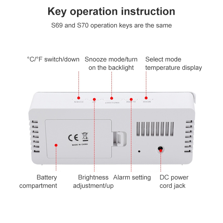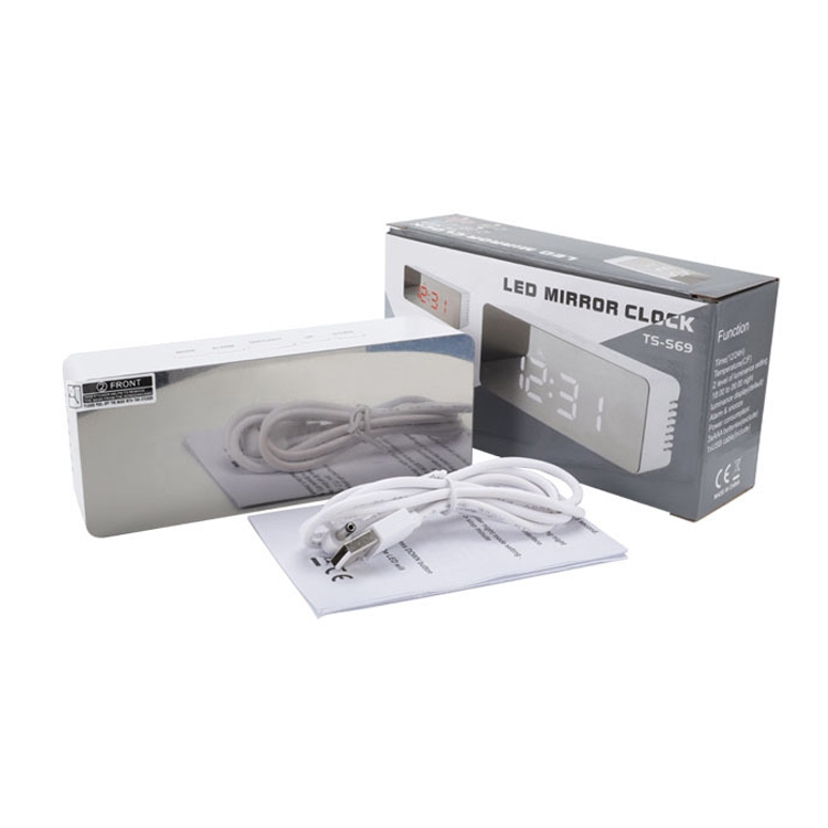 TS-S69-R Multifunctional LED Alarm Clock Battery / Plug-in Charging Dual-purpose Make-up Mirror Clock