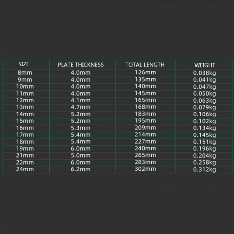 6. Packing list: 10 sets: 8mm/10mm/12mm/13mm/14mm/15mm/17mm/19mm/22mm/24mm, 12 sets: 8-10-12-13-14-15-16-17-18 -19-22-24mm