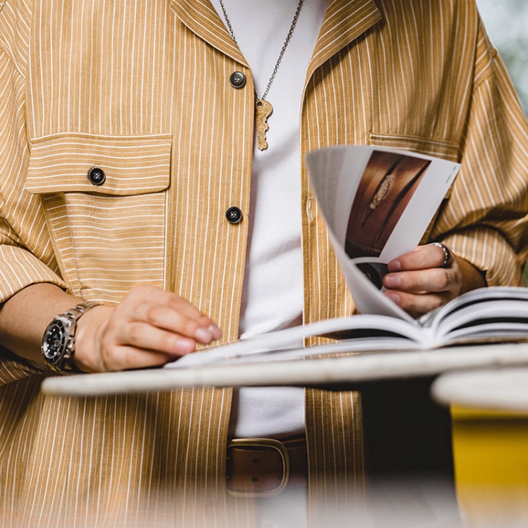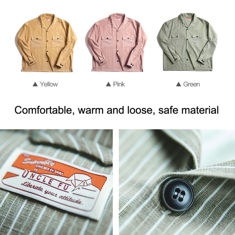 TW2007207 Men Vintage Striped Cuban Collar Shirt Long Sleeve Top