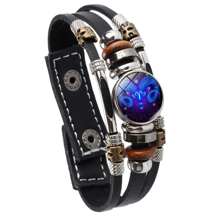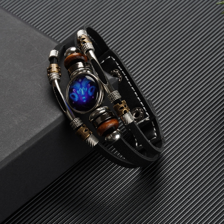 Twelve Constellations Night Light Leather Rope Bracelet Woven Beads Bracelet, Style: