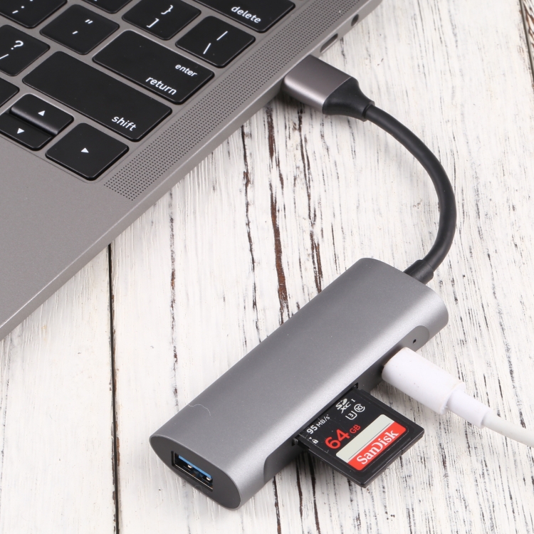 2. It has a Type-C, a USB 3.0, an SD card slot, and a TF card slot input interface, which can connect 4 devices at the same time