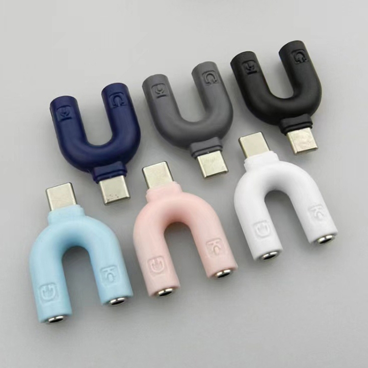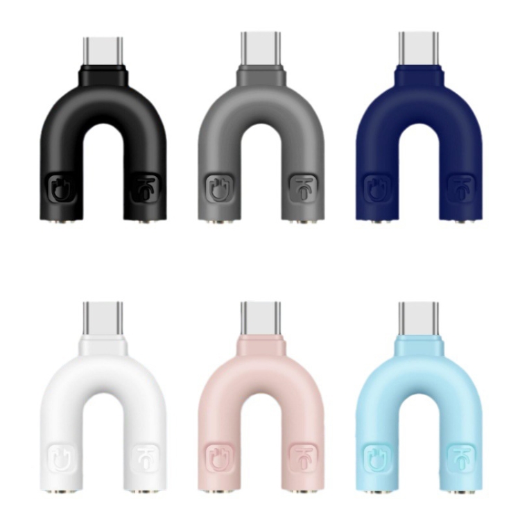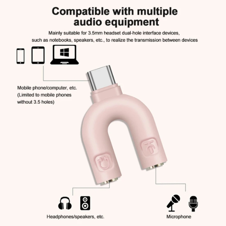 U-shape Splitter Stereo Plug 1 in 2 Type-C To Dual 3.5mm Jack Audio Mic Headphone Splitter Adapter