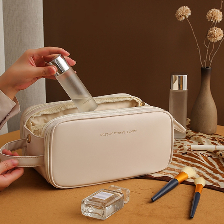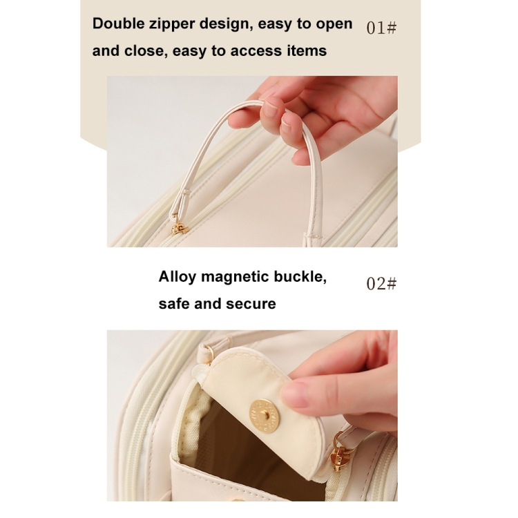 U-shaped Opening PU Leather Travel Cosmetic Bag Large Capacity Toiletries Storage Bag
