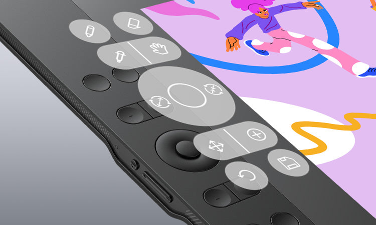 Featuring 8 physical shortcut keys, the UE16 provides a tactile feedback that enhances the drawing experience. Additionally, the scroll wheel allows for seamless transition between 4 preset functions by pressing the switch button