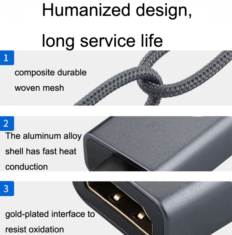 4. The aluminum alloy shell has fast heat conduction, humanized design, composite durable woven mesh, and gold-plated interface to resist oxidation